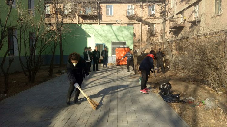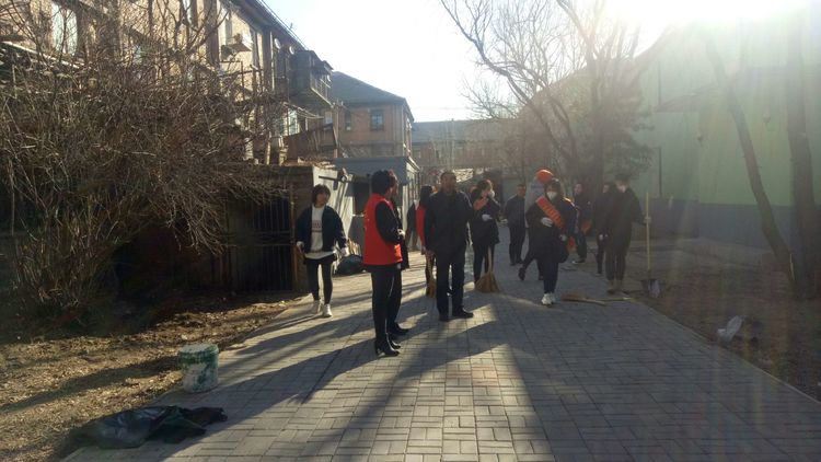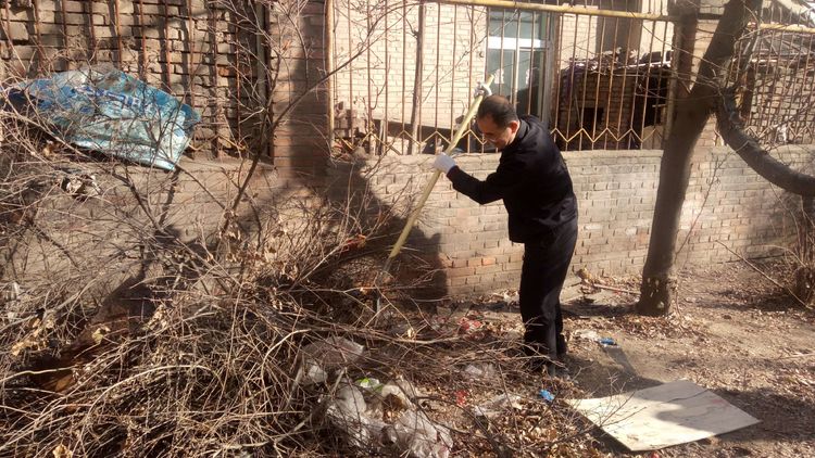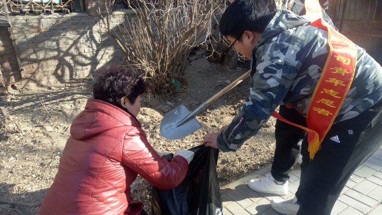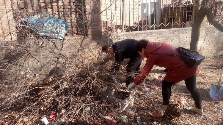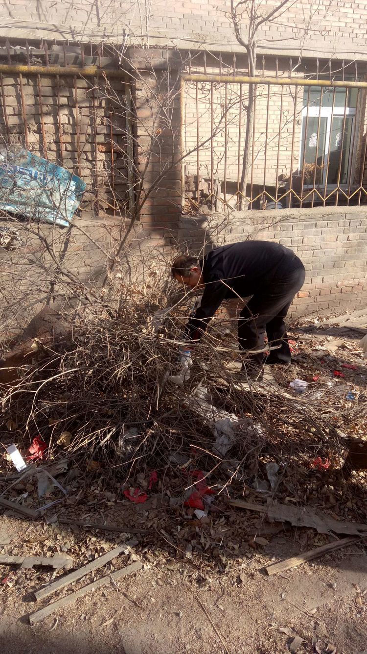 看安馨養(yǎng)老服務(wù)中心后院里參加清掃衛(wèi)生的青年團(tuán)員志愿?jìng)兡弥灾?、鐵鍬、鋸等用具。開始了緊張的忙碌,鋸枯樹枝的,清掃院落的,清倒垃圾的,大家分工合作,經(jīng)過了一上午的清掃整理,整個(gè)院落更加的干凈整潔了。